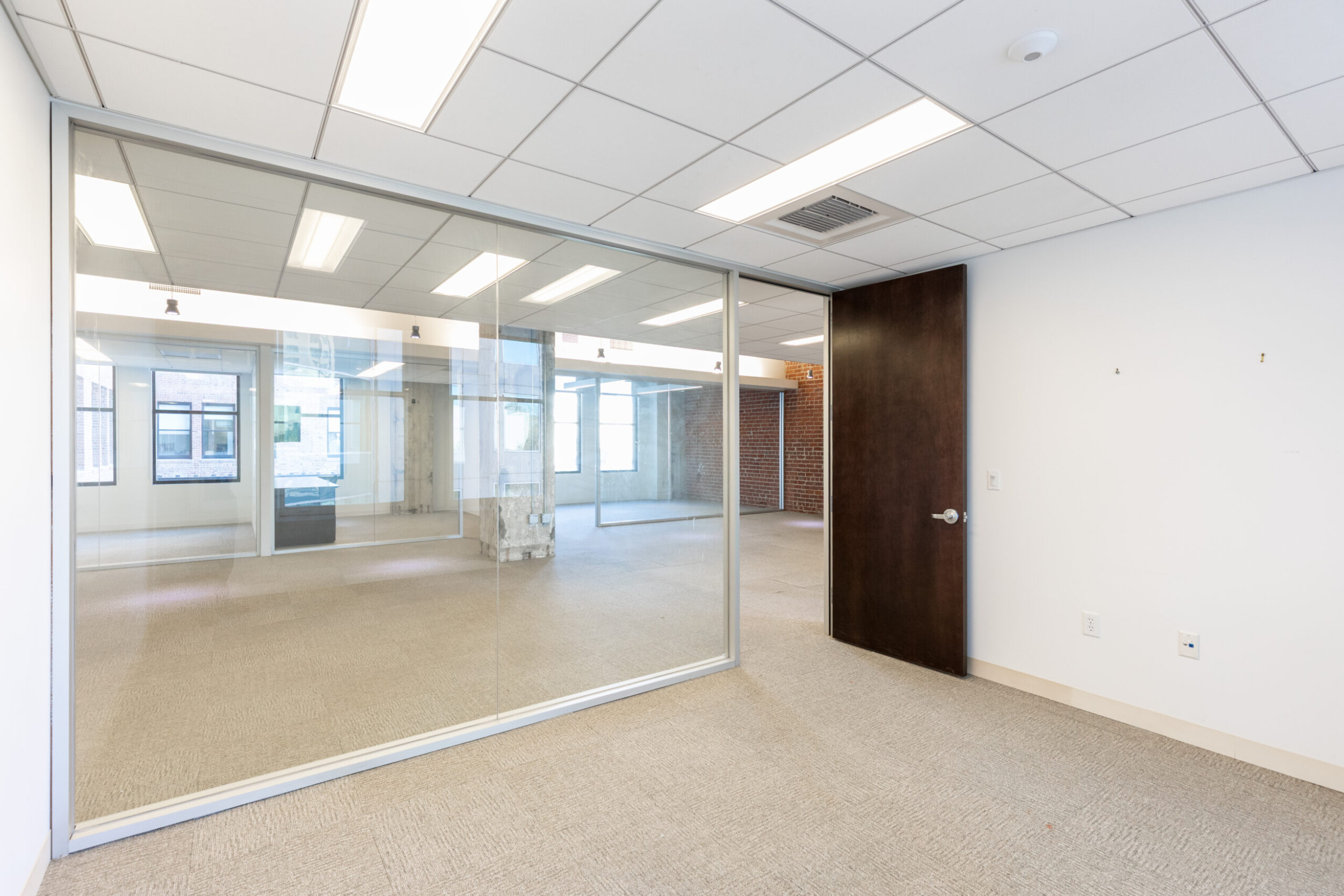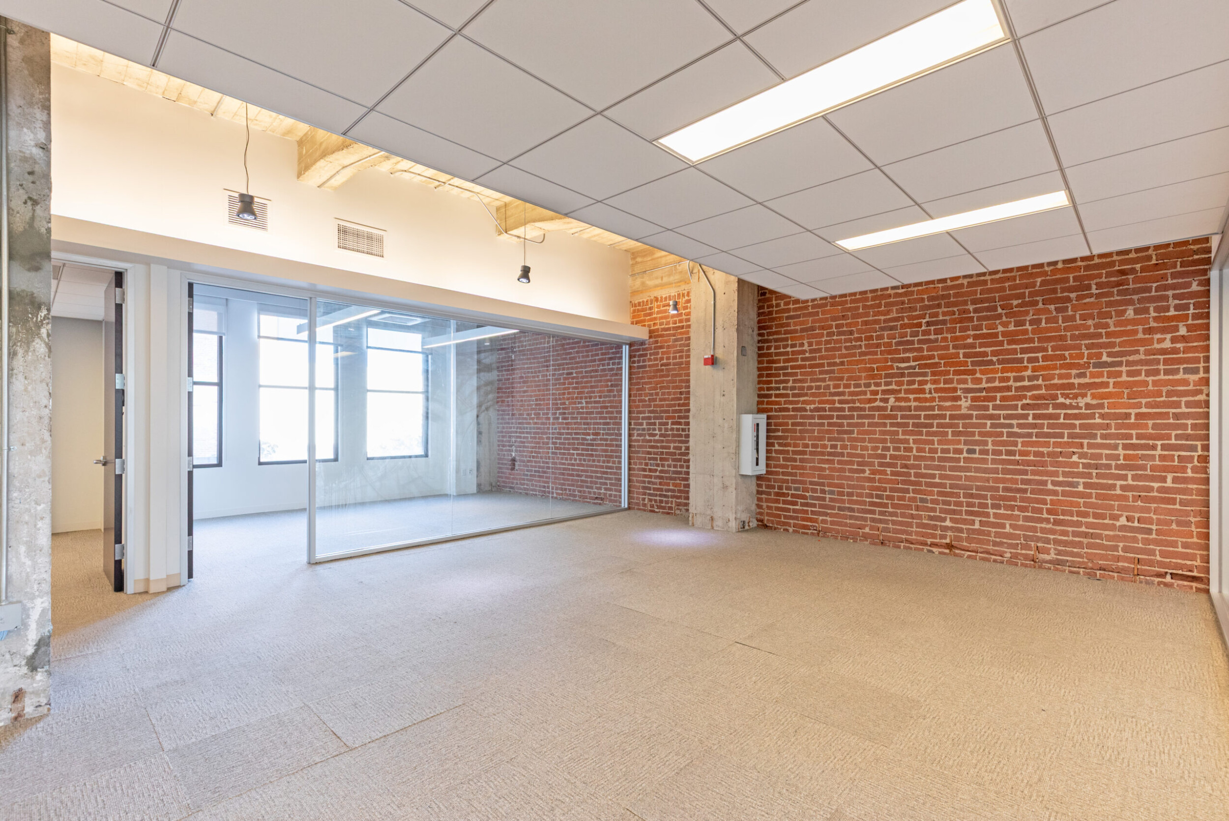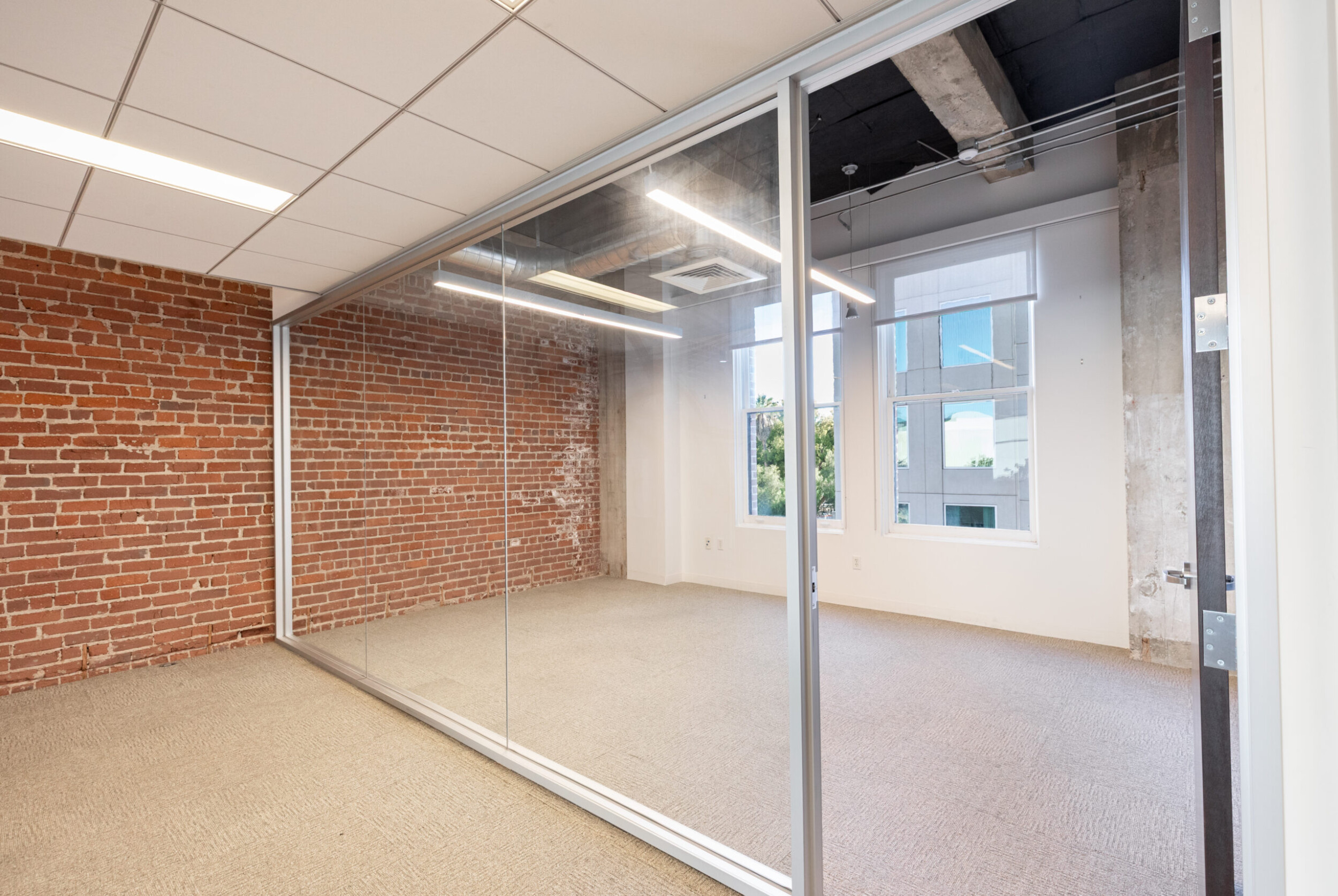 The design of the available spaces features incredibly tall ceilings with exposed mechanical ducting, brick, large windows that bring a tremendous amount of natural light and a balance of enclosed space and open and collaborative work space. Also, there is a shared conference room available next door at Meridian Plaza (1415 L Street).